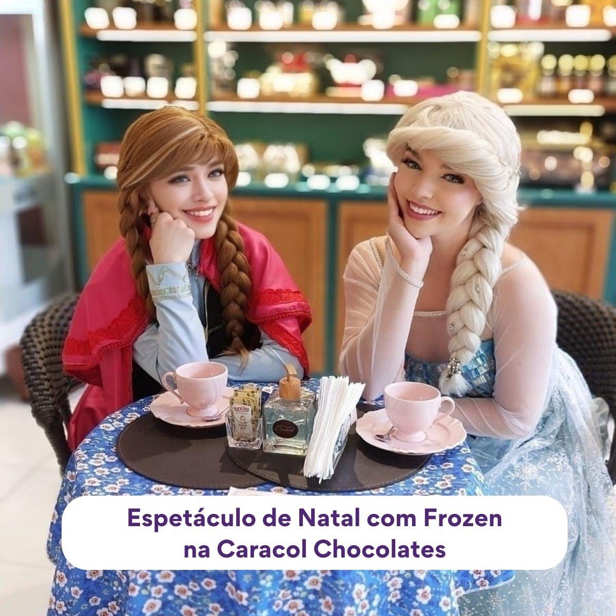 O Natal já chegou na Caracol Chocolates! No dia 13 de dezembro, sábado, o local recebe um espetáculo ao vivo com a presença das personagens de Frozen: Anna e Elsa