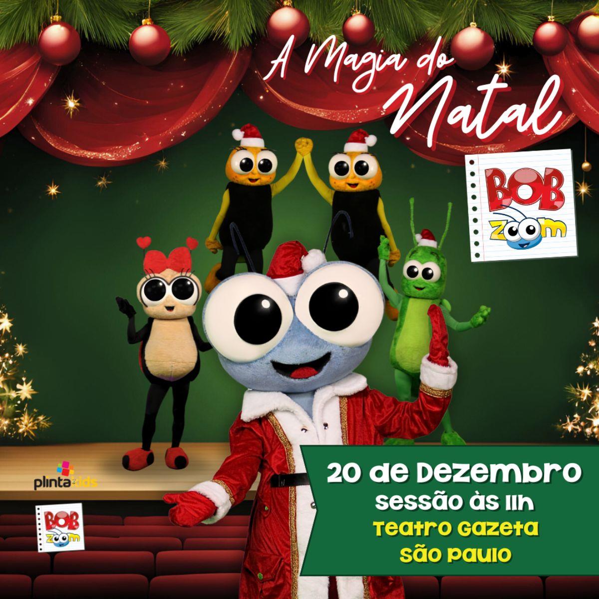 O Teatro Gazeta apresenta o musical Bob Zoom e a Magia do Natal, no dia 20 de dezembro, sábado.